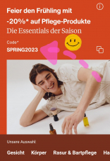 Zalando bietet momentan 20% Extra mit dem Code —-> SPRING2023 auf ausgewĂ€hlte Pflegeprdukte/Accessoires und auch auf bereits reduzierte Artikel.
