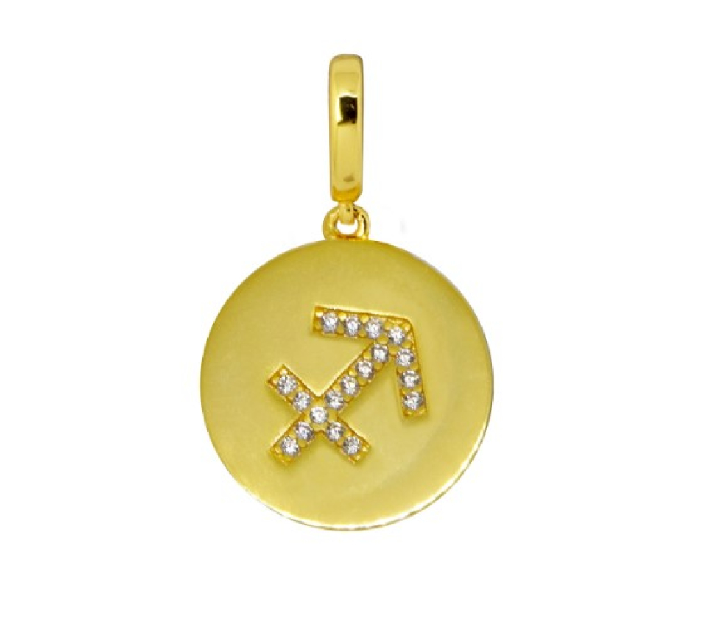 Dieser elegante Anhänger mit dem Sternzeichen Schütze ist aus vergoldetem Silber gefertigt und mit funkelnden Zirkonia-Steinen besetzt. Er verbindet stilvolles Design mit persönlicher Bedeutung und ist ein ideales Schmuckstück für jeden Tag oder besondere Anlässe. Die hochwertige Verarbeitung garantiert Langlebigkeit und ein angenehmes Tragegefühl. Ein Schmuckstück, das Persönlichkeit und Stil perfekt vereint