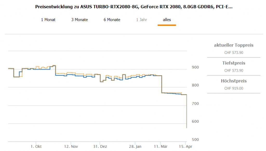 Mir ist gerade aufgefallen, dass bei Steg und ein paar anderen Händlern die Grafikkarte GTX 2080 um rund CHF 200.- reduziert worden ist.