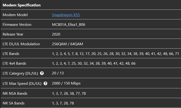 Neben einem bis zu 1,5 GHz schnellen Prozessor aus einem ARM Cortex A7 Kern und 4GB Speicher, ist im ZTE MC801A auch das Qualcomm Snapdragon X55 Modem verbaut. Dieses unterstützt die Mobilfunkstandards UMTS, LTE und 5G.