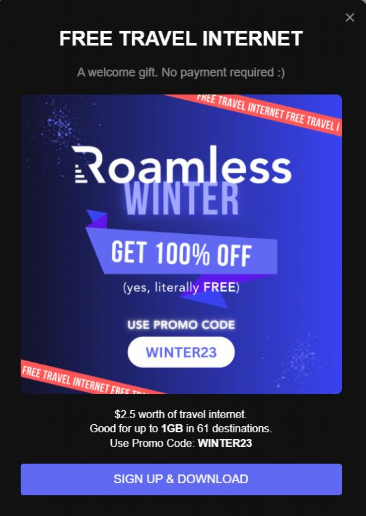 Am Black Friday gab es dieses Angebot von Roamless für eine Kostenlose Data eSIM mit 10$ Guthaben. Ich habe eben diesen Deal entdeckt, wo ihr nochmals 2.50 USD dazu bekommen könnt.