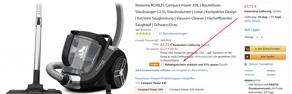Bei Amazon gibts gerade den Zyklon-Staubsauger Rowenta Compact Power XXL zum Aktionspreis von 75 Franken. Laut toppreise beträgt der Vergleichspreis in der Schweiz 109 Franken, ein Preischart ist leider nicht verfügbar. Um auf den Preis zu kommen müsst ihr den 15%-Gutschein auf der Produkteseite aktivieren.